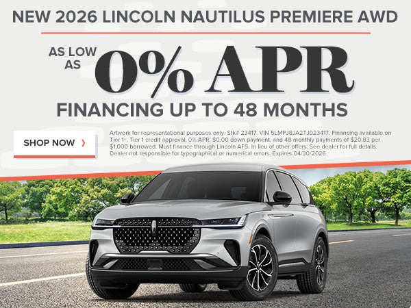 Artwork for representational purposes only. Stk# 23417. VIN 5LMPJ8JA2TJ023417. Financing available on Tier 1+, Tier 1 credit approval. 0% APR, $0.00 down payment, and 48 monthly payments of $20.83 per $1,000 borrowed. Must finance through Lincoln AFS. In lieu of other offers. See dealer for full details. Dealer not responsible for typographical or numerical errors. Expires 04/30/2026.